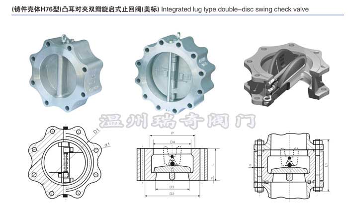 凸耳對(duì)夾式止回閥,溫州瑞奇的H76型美標(biāo)凸耳對(duì)夾旋啟式止回閥適用于各種管路上,用于防止介質(zhì)倒流。通過選用不同材質(zhì),適用于,水,蒸汽,油品,酸類強(qiáng)氧化性介質(zhì)及尿素等多種介質(zhì)。